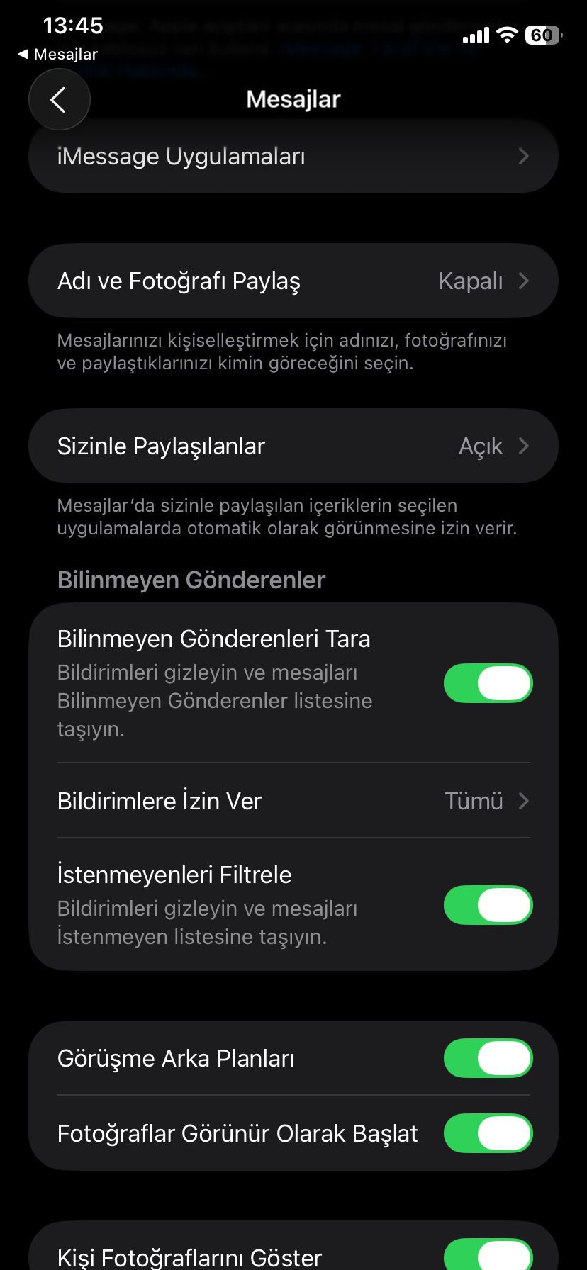 iOS 26’da spam filtresini açma yahut kapatma